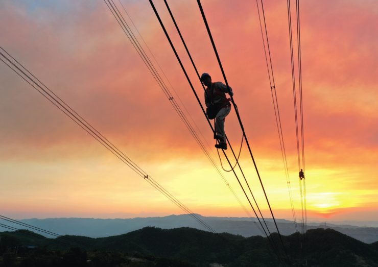 国网重庆市电力公司员工在500千伏珞南一二线开展走线验收(摄影/李涛)