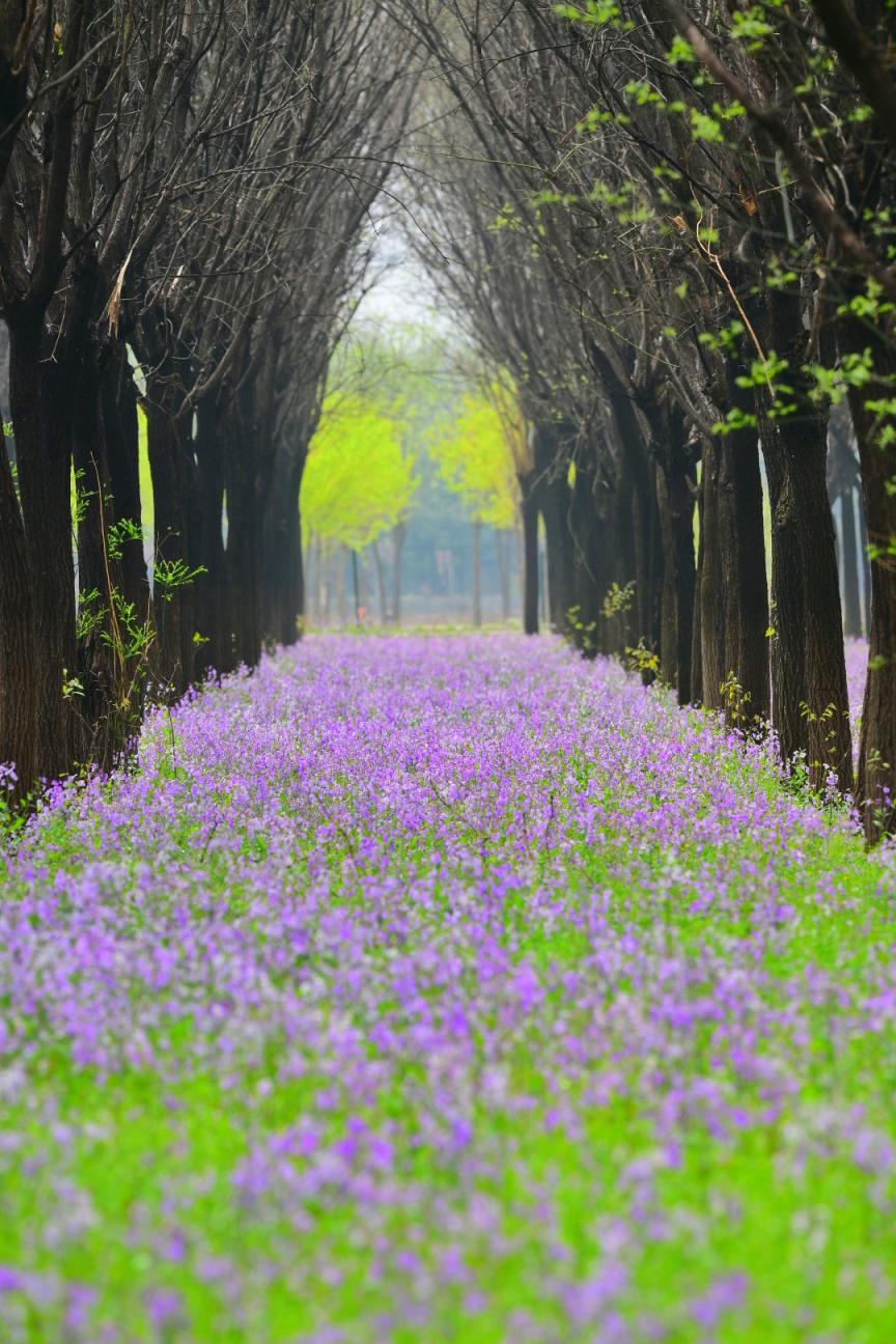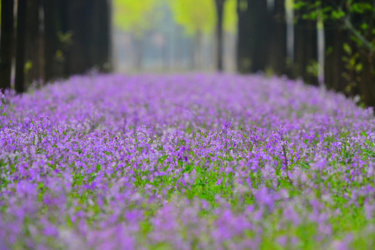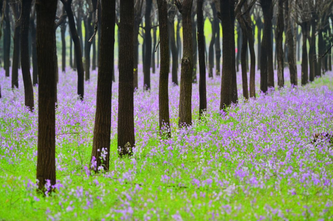 京郊林荫间,二月兰如约绽放,以最质朴的姿态,织就了一片绵延不绝的紫色花毯。
