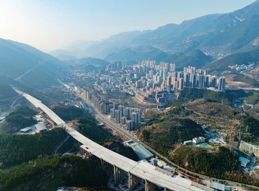 1月28日,巫镇高速公路巫溪段施工现场,一派繁忙景象(摄影 谢智强 视觉重庆)