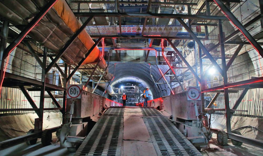 1月28日,中铁八局技术员在渝湘高铁重庆黔江段姚家院子隧道检查施工情况 (摄影 杨敏)