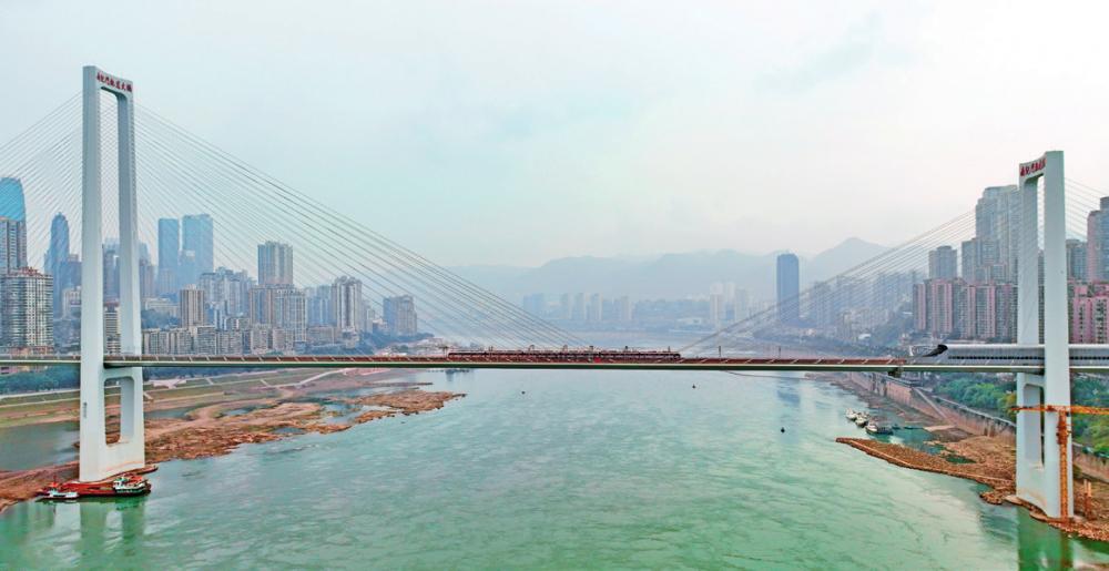 1月18日,重庆轨道列车通过南纪门长江轨道专用桥(摄影 钟志兵 视觉重庆)
